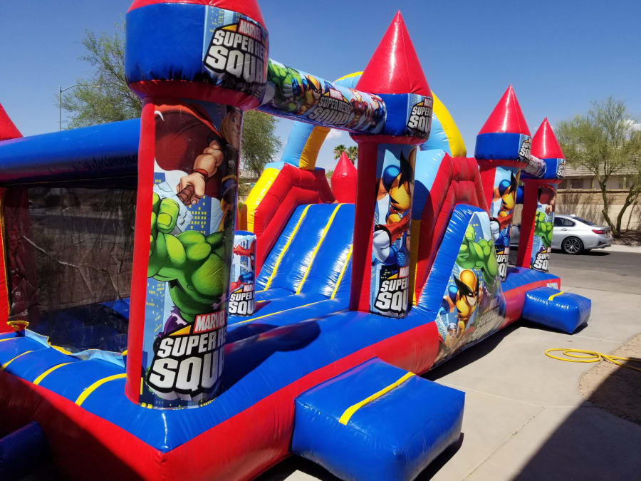 With 30 feet of bounce space, this jumping castle offers plenty of room for kids to jump, bounce, and unleash their inner superhero. Perfect for birthday parties, school events, superhero-themed celebrations, and more, this inflatable will provide hours of fun and adventure for your little Avengers-in-training.