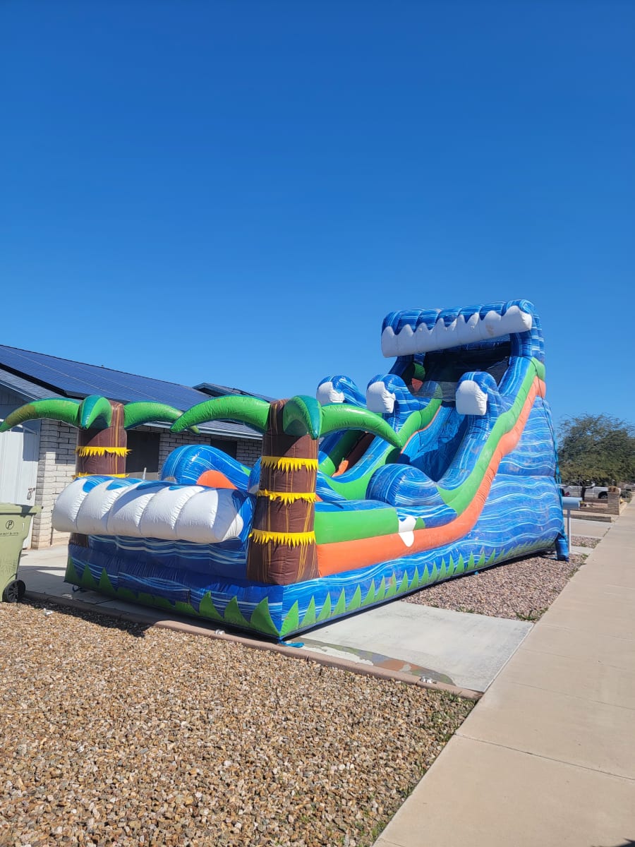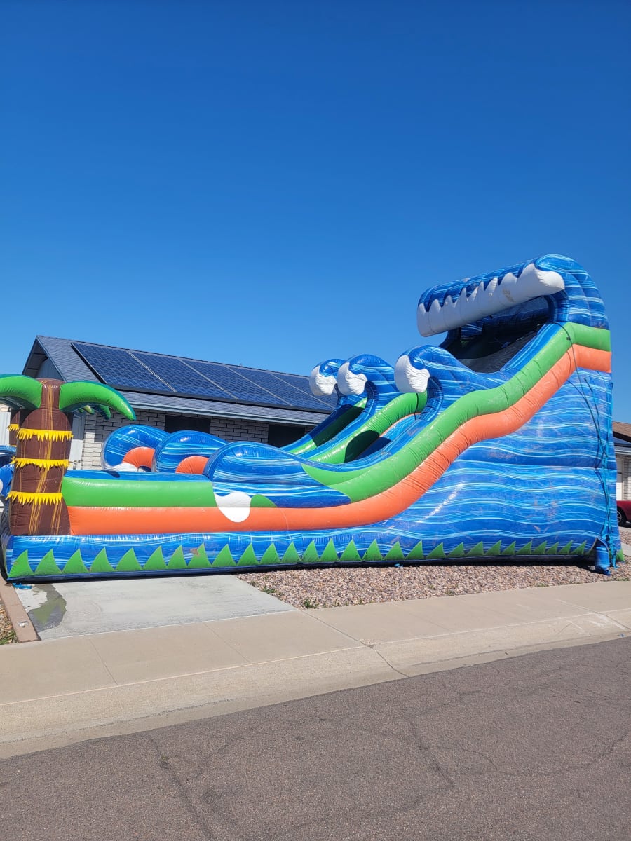 Make a splash at your next event with our 18ft Wave Waterslide with Splash Pad – the perfect inflatable for summer fun! This eye-catching slide features a bold wave design and bright ocean-blue colors that kids and adults will love.