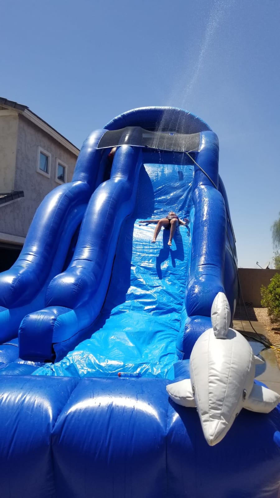 Book now to bring the ocean adventure to your next event with the 22ft Blue Dolphin Water Slide—where fun and cool vibes meet!