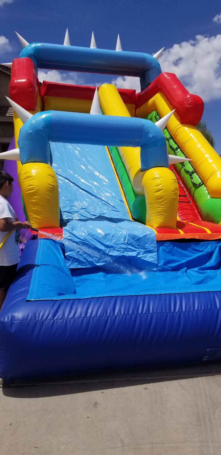 Get ready to make a splash with our 16ft Tall Spike Waterslide! This thrilling waterslide stands at 16 feet tall and is designed to give riders an exciting, fast-paced ride as they race down to a refreshing splash at the bottom. With its bold, vibrant colors and sleek design, it’s sure to be the highlight of any event.